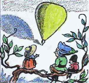 Peter gasped. It was so very sudden. They were off in the big blue sky again with all the twinkles around them everywhere. Peter lost track of where they were. For a moment he was afraid Uncle Peppercorn might not be able to find the earth among all the sparkling things. Then he saw it. It was the third speck from the sun that was coming nearer and nearer. Suddenly they were back home. They just missed the moon and landed quite softly on the earth.